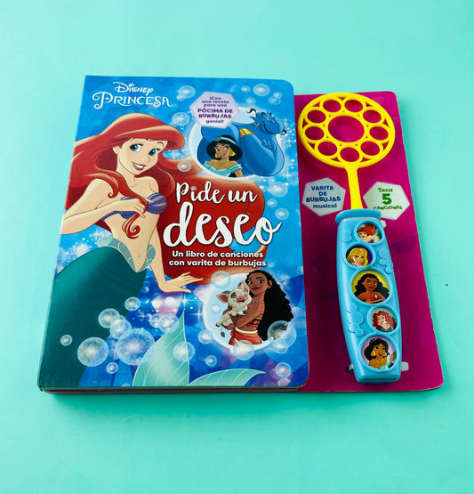 Pide un deseo un libro de canciones con varitas de burbujas