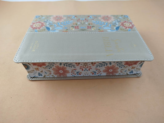 Biblia rvr 1960 letra grande beige flores - canto decorado sin cierre