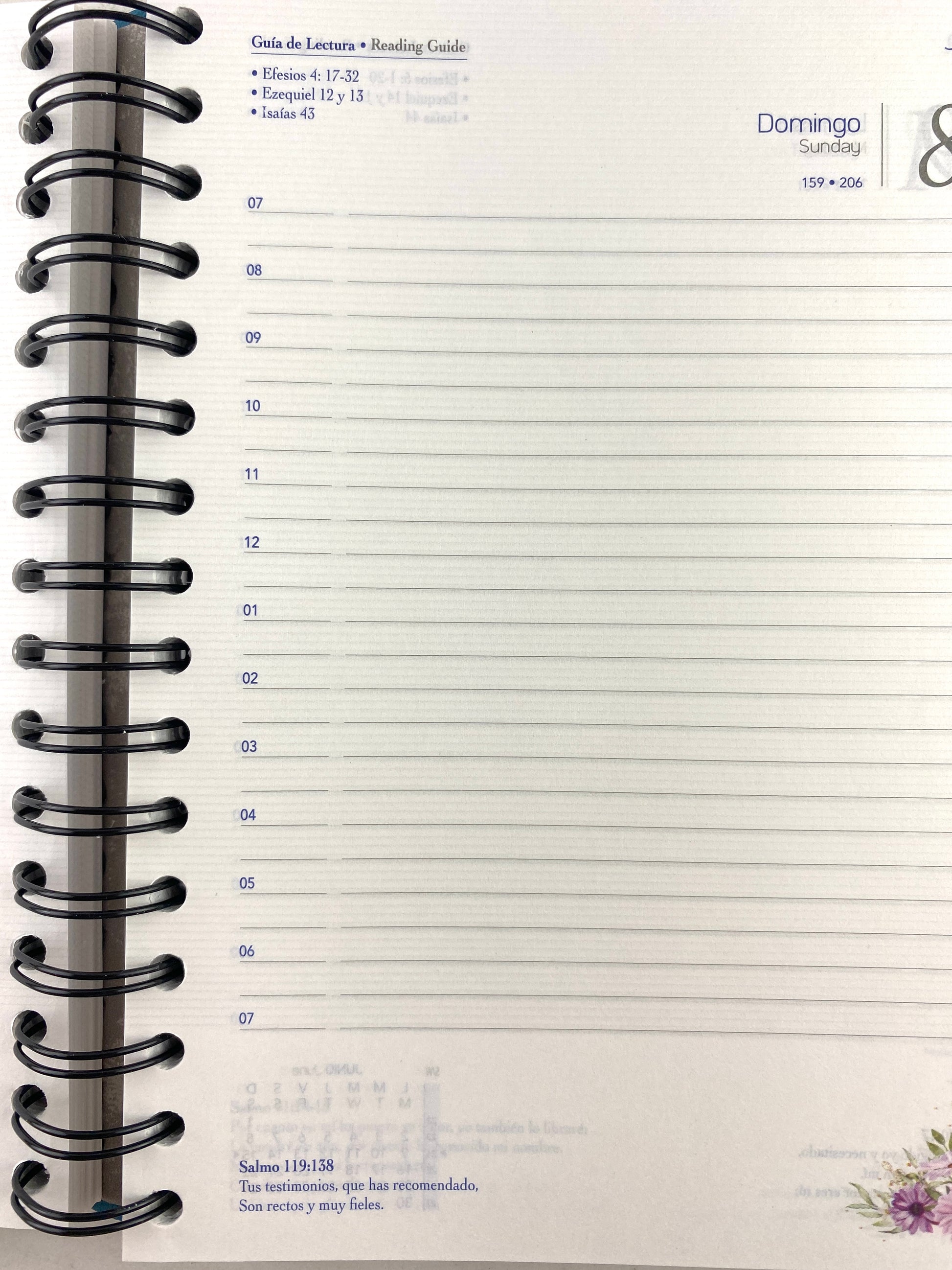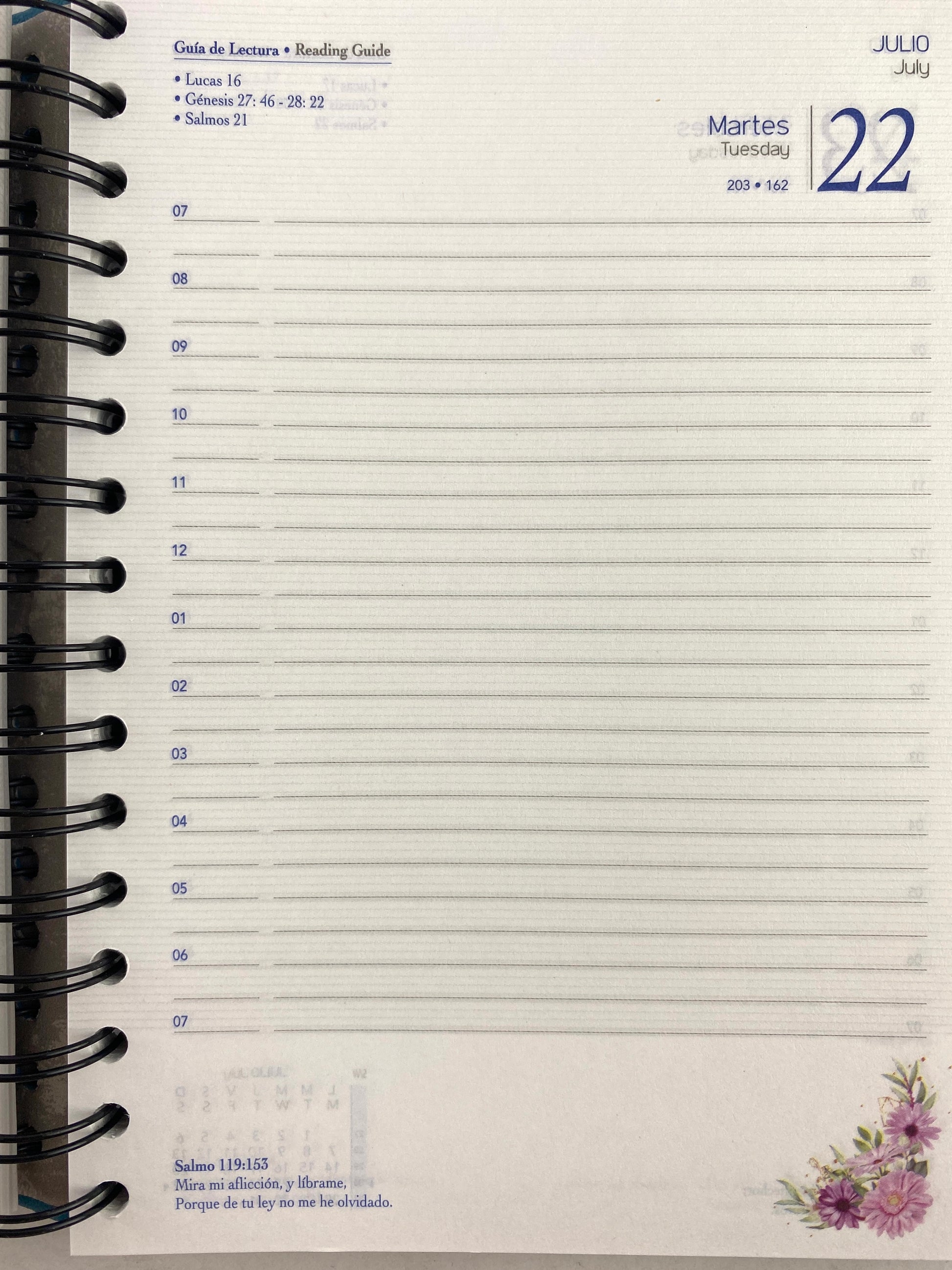 Hoja diaria con horas marcadas de 7 AM a 7 PM