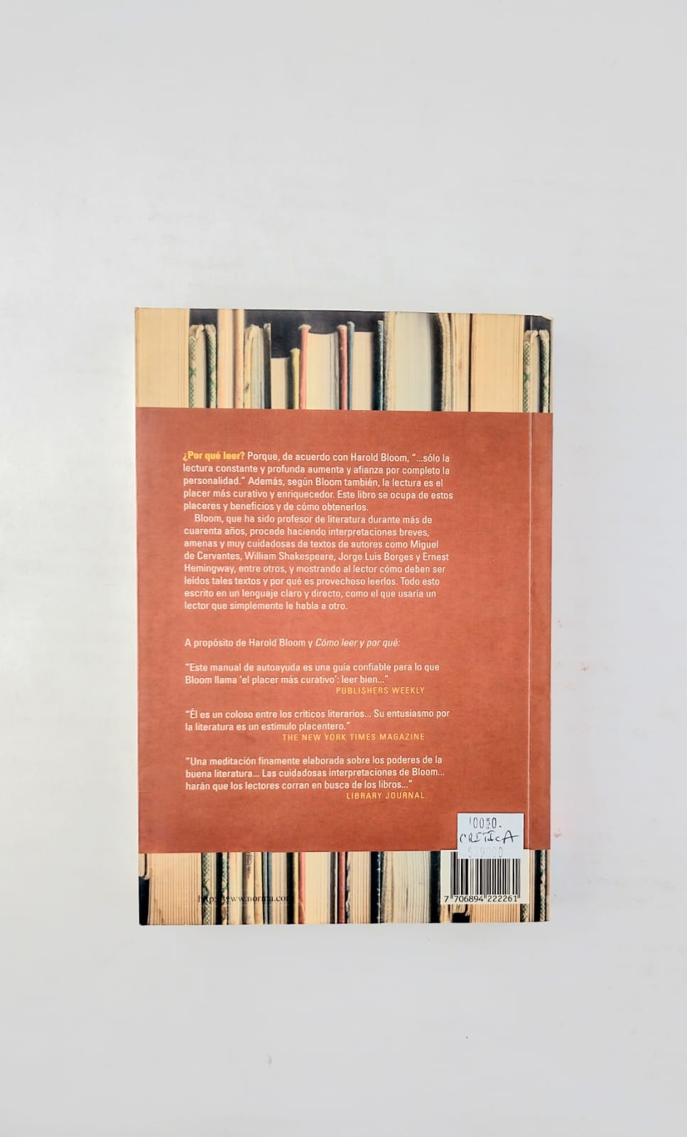 ¿Por qué leer? Porque, de acuerdo con Harold Bloom, "...sólo la lectura constante y profunda aumenta y afianza por completo la personalidad." Además, según Bloom también, la lectura es el placer más curativo y enriquecedor. Este libro se ocupa de estos placeres y beneficios y de cómo obtenerlos. Bloom, que ha sido profesor de literatura durante más de cuarenta años, procede haciendo interpretaciones breves, amenas y muy cuidadosas de textos de autores como Miguel de Cervantes, William Shakespeare, Jorge Luis Borges y Ernest Hemingway, entre otros, y mostrando al lector cómo deben ser leidos tales textos y por qué es provechoso leerlos. Todo esto escrito en un lenguaje claro y directo, como el que usaría un lector que simplemente le habla a otro.