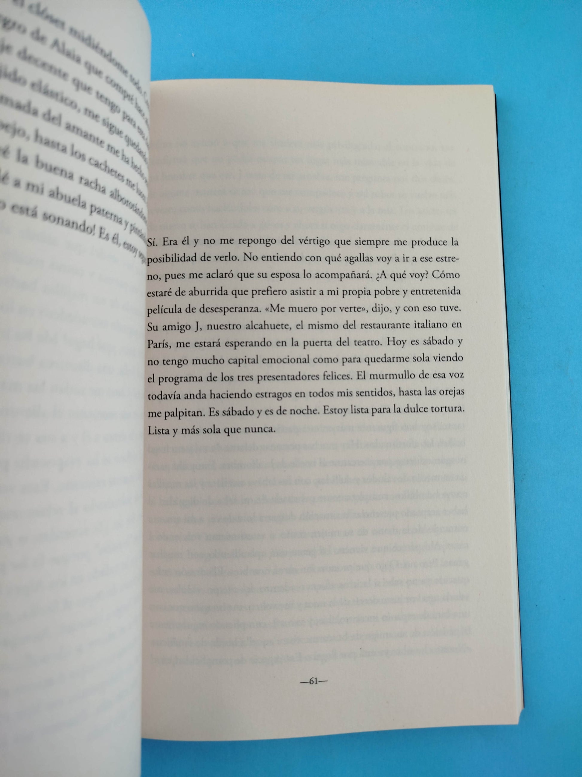 La excusa perfecta para alargar su estancia en Madrid será un curso de actuación, pero su nueva condición de soledad desatará una crisis de ansiedad por todo aquello que cree estar dejando atrás. Una noche suena el teléfono y del otro lado de la línea aparece la voz de alguien que dice estar loco por ella. Las llamadas del misterioso hombre del teléfono se irán haciendo cada vez más frecuentes, hasta crear un vínculo que cuestionará los límites de la inteligencia y de la belleza.