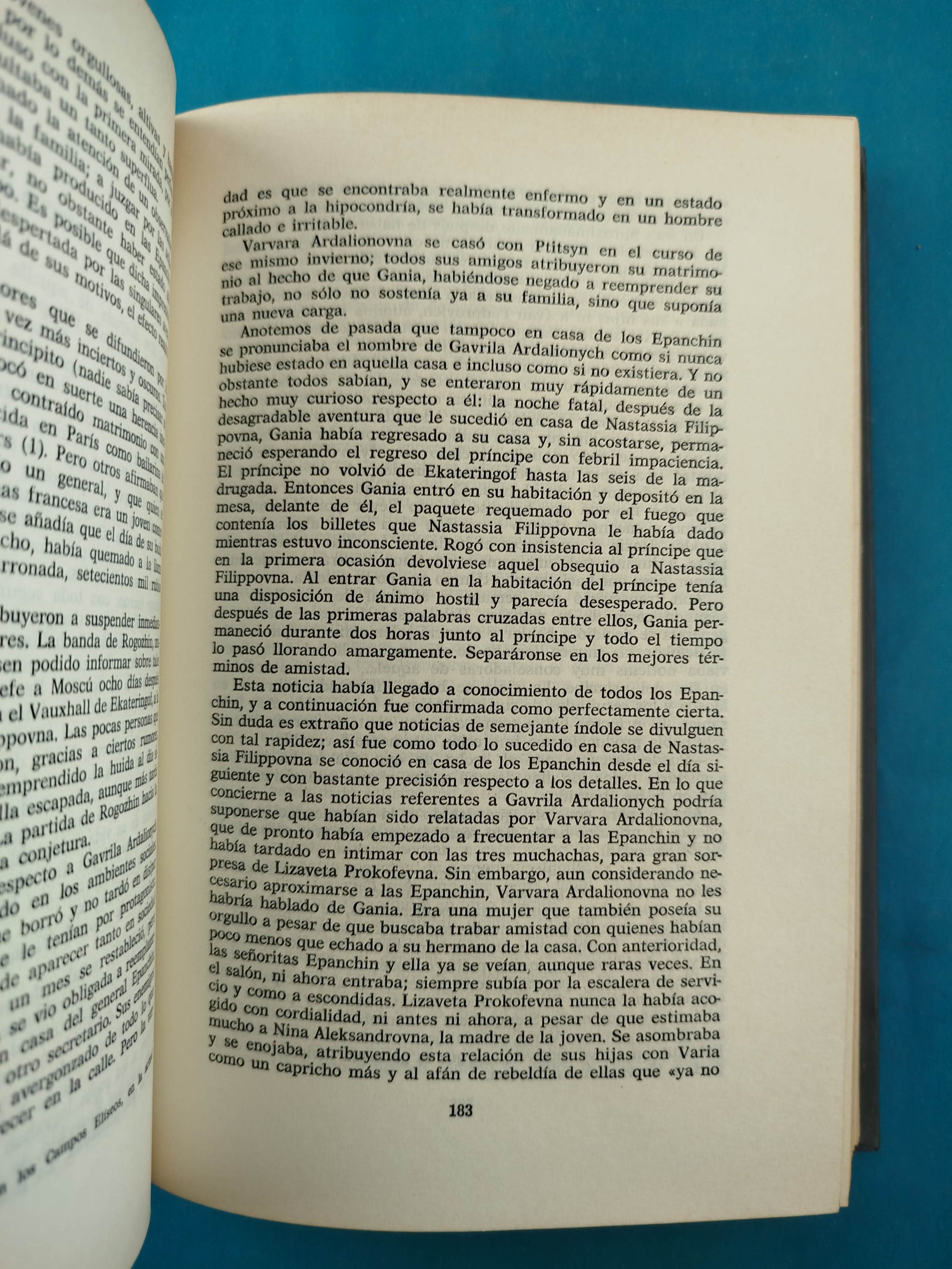 El idiota es una novela psicológica y filosófica que narra el regreso del príncipe Myshkin a la sociedad rusa tras años de tratamiento por epilepsia en Suiza. Dotado de una bondad ingenua y una visión espiritual del mundo, Myshkin se enfrenta a un entorno marcado por el cinismo, la ambición y la corrupción moral. Su presencia desencadena tensiones entre personajes como Rogochin y Nastasia Filíppovna, en una trama que explora la fragilidad de la pureza en un mundo decadente. Dostoyevski construye un retrato conmovedor del “hombre bueno” en una sociedad que lo percibe como un idiota, planteando profundas reflexiones sobre el sufrimiento, la redención y la naturaleza humana