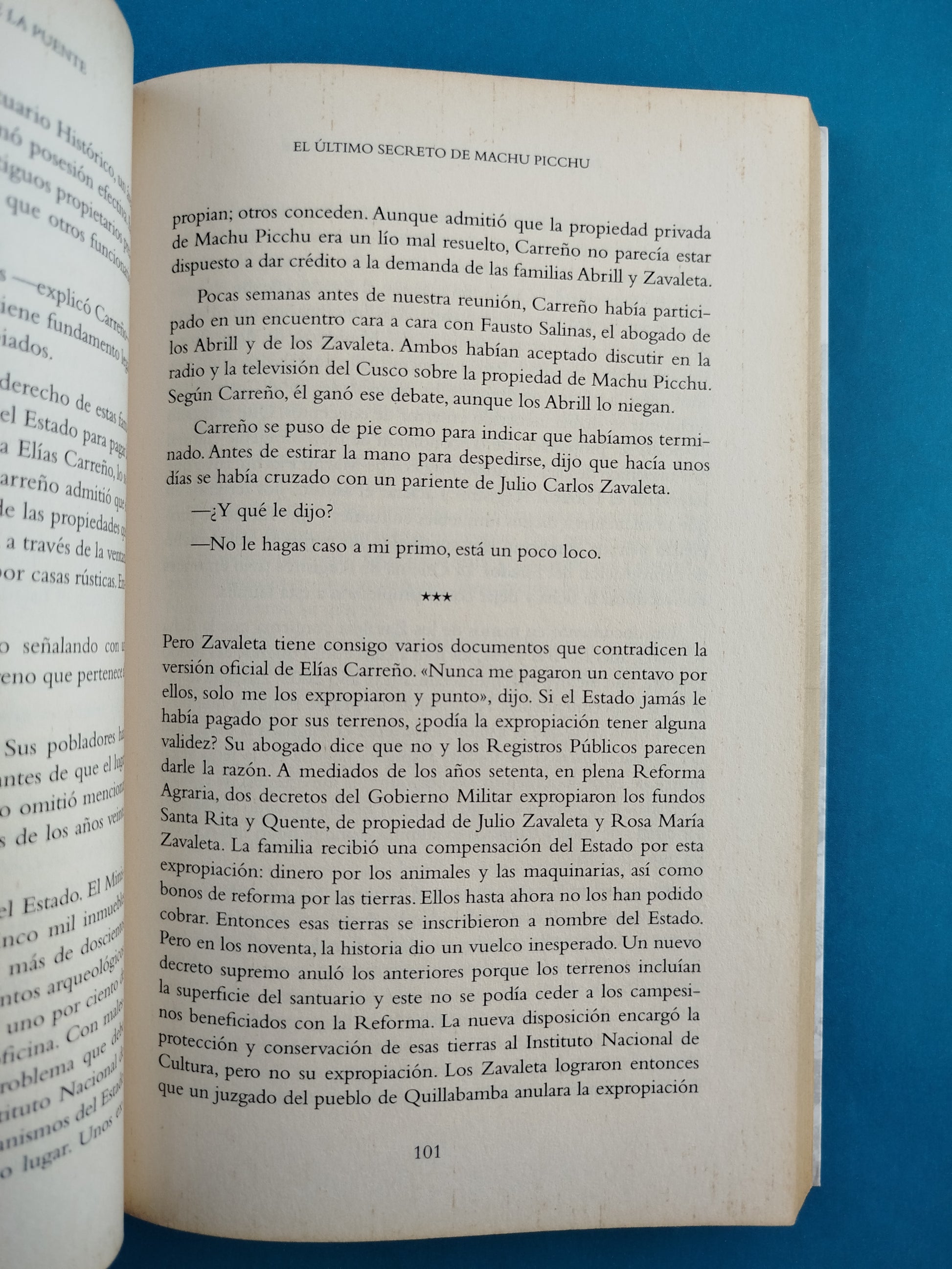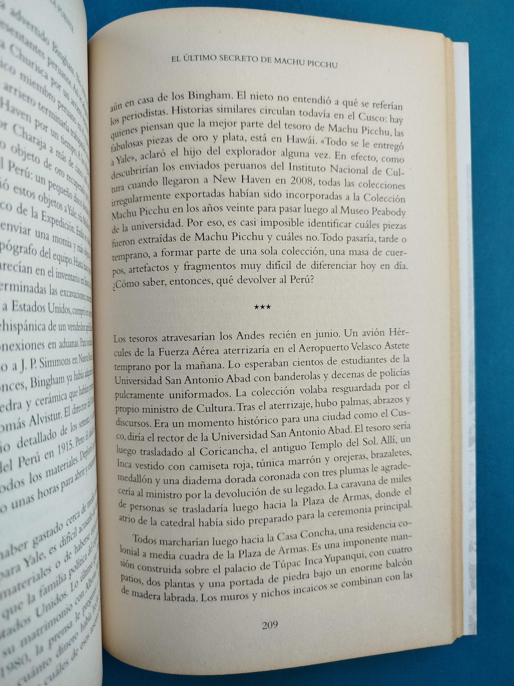 Este libro cuenta la llegada casi accidental de Hiram Bingham a la Ciudad Perdida de los Incas que no estaba perdida sino oculta en la hacienda de los Abrill. Es finalmente la historia de los herederos de Machu Picchu, dos familias que se enfrentan al Estado peruano por la propiedad del santuario y para que se les reconozca un legado que nadie considera posible. El resultado es un libro imprescindible para todo aquel que quiera internarse en Machu Picchu y viajar por su verdadera historia.