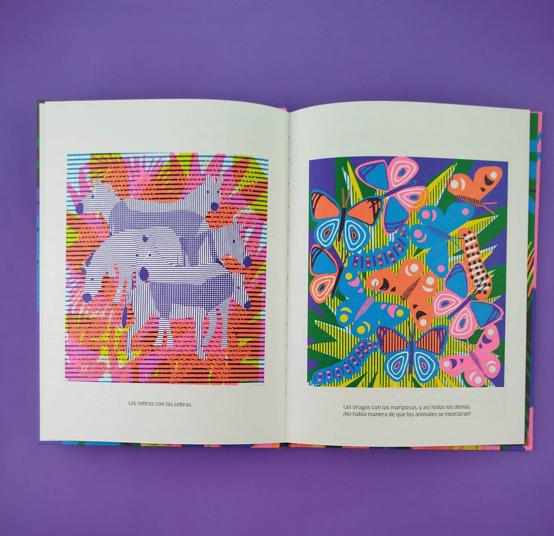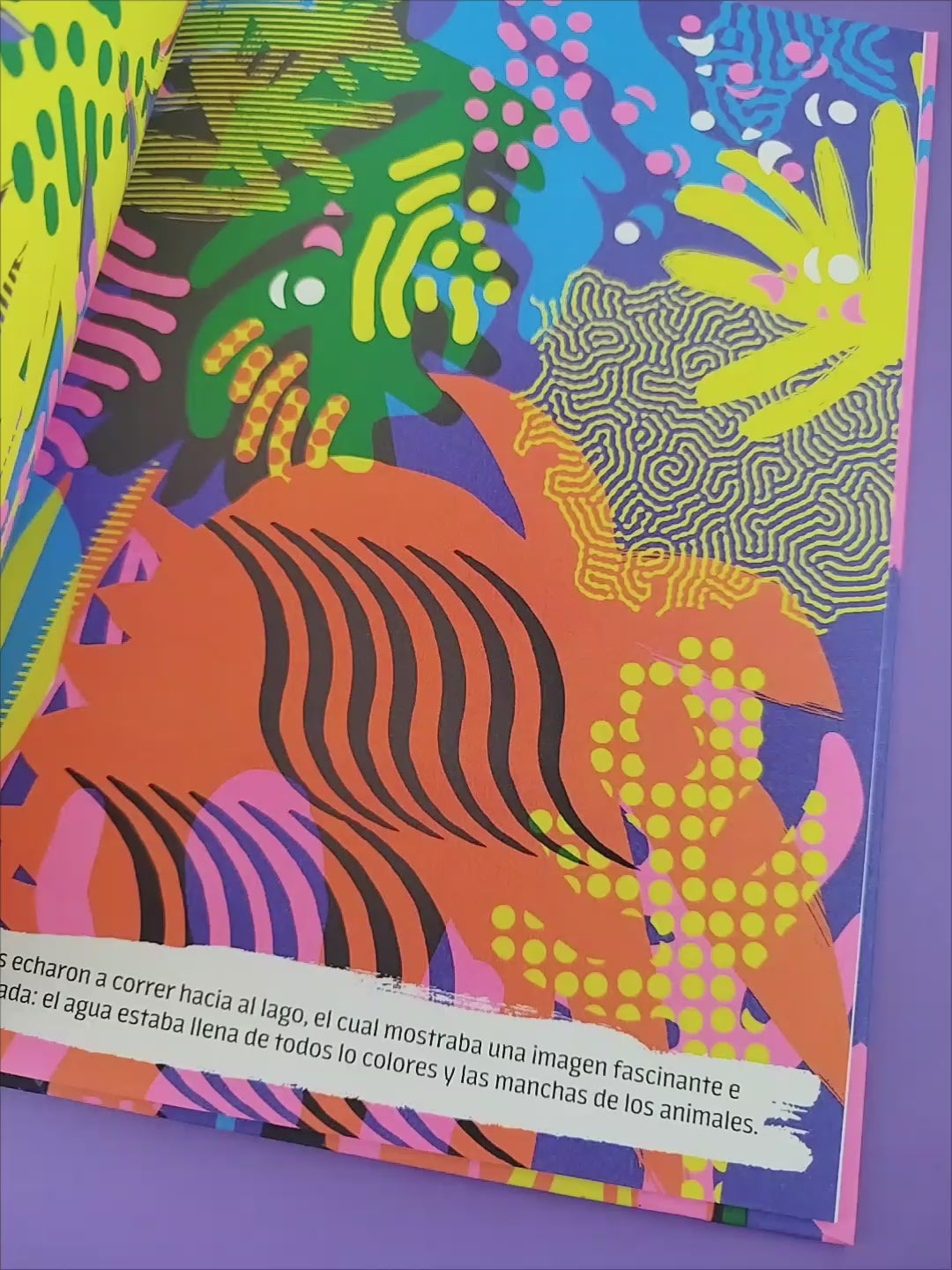 En la temible jungla vivían muchísimos animales. Pero todos vivián separados, sin mezclarse nunca. Durante una devastadora tormenta, los animales pierden todos los adornos que los caracterizan. Plumas, pelaje, manchas, rayas, colores brillantes: todo ha desaparecido y los animales se encuentran desposeídos y desamparados. Descubren que sus colores y manchas están en el lago donde suelen saciar su sed. Al atreverse a entrar en el agua para recuperarlos, los animales se domesticarán, vivirán juntos e incluso se mezclarán. Una bonita historia sobre la diferencia y la aceptación de uno mismo.