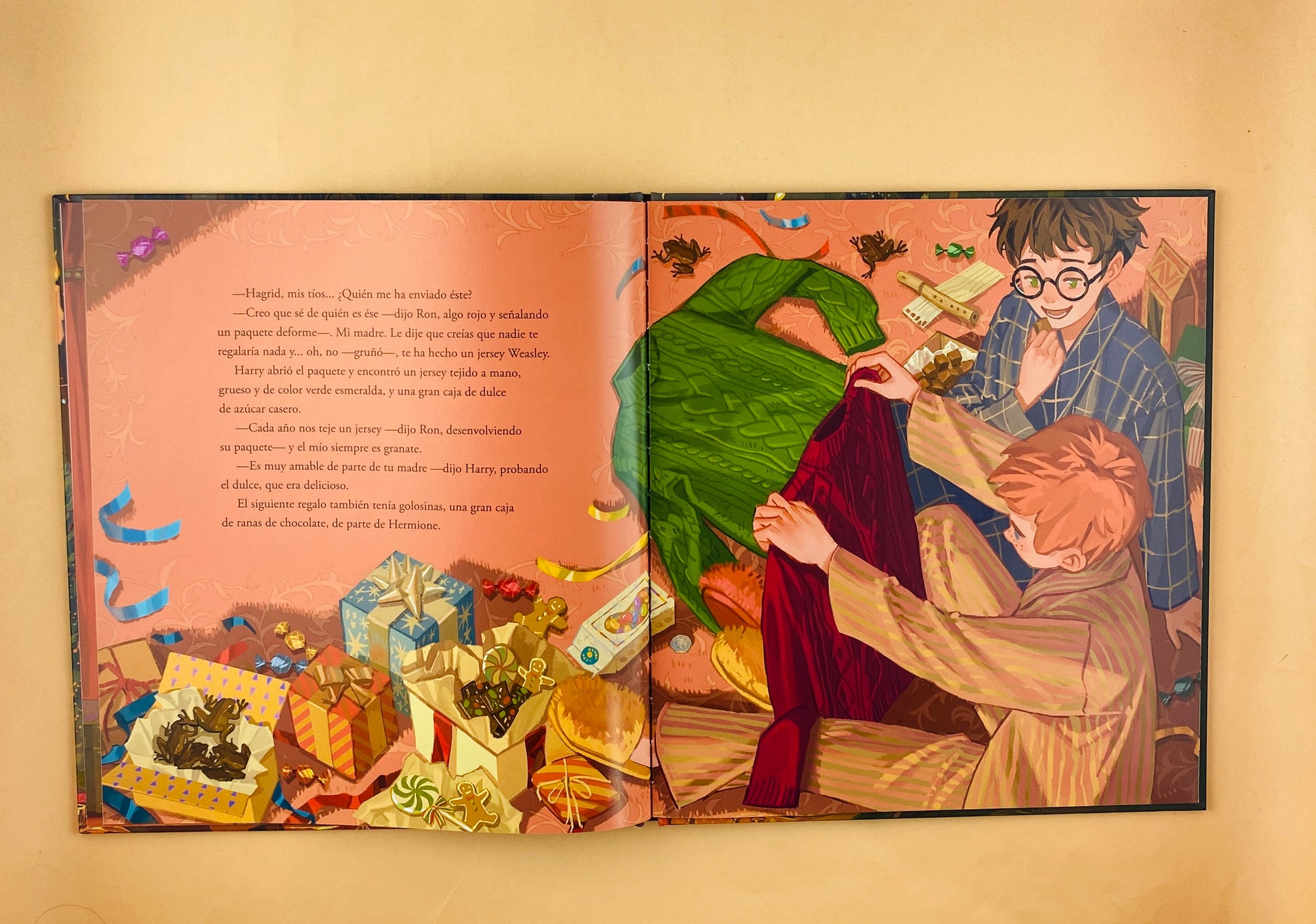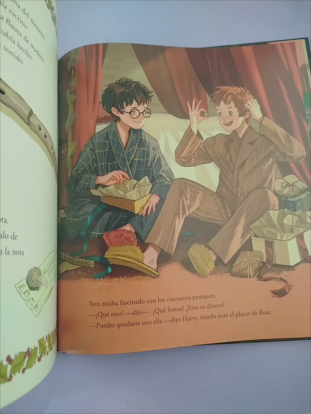 «Se acercaba la Navidad. Una mañana de mediados de diciembre, Hogwarts apareció cubierto por alrededor de un metro de nieve.» Así comienza el capítulo doce de Harry Potter y la piedra filosofal, en el que se relata la entrañable historia de la primera Navidad que Harry Potter vive en Hogwarts. Con el Gran Comedor decorado con preciosos abetos, las acogedoras tardes en la sala común de Gryffindor y la emoción de abrir los regalos la mañana de Navidad, estas fechas están repletas de calidez, amistad, comida deliciosa y sorpresas mágicas que Harry nunca olvidará.