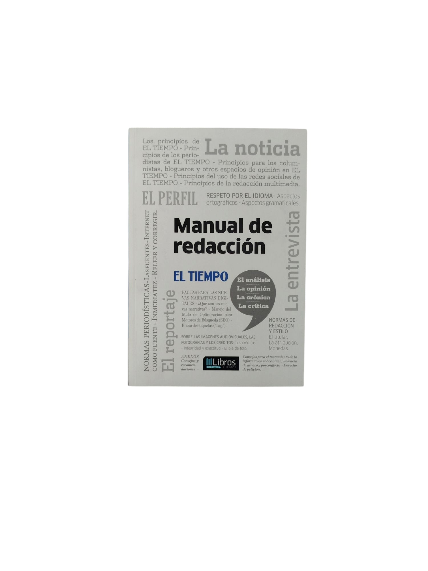 Cuando "EL TIEMPO escribió su primer manual de redacción, en 1989, era difícil imaginar la revolucionaria época que el periodismo iba a afrontar por cuenta de la expansión de la era del Internet y la tecnología digital. Hoy, esta Casa Editorial se ha convertido en uno de los más versátiles y sólidos conglomerados de medios de Colombia por cuenta no solo de producir varios periódicos, sino también por sus revistas, sus portales digitales y sus canales de televisión. Durante ese emocionante proceso de la evolución, EL TIEMPO ha sido testigo y protagonista del desarrollo de nuevas prácticas periodísticas, tan innovadoras como desafiantes, las cuales ni si quiera se mencionaban en ese primer texto que buscaba dar pautas a los reporteros que solo trabajaban para el formato impreso.
