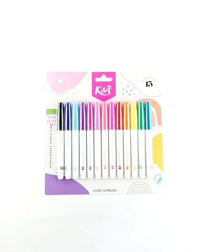 13 Marcadores Punta Fina.