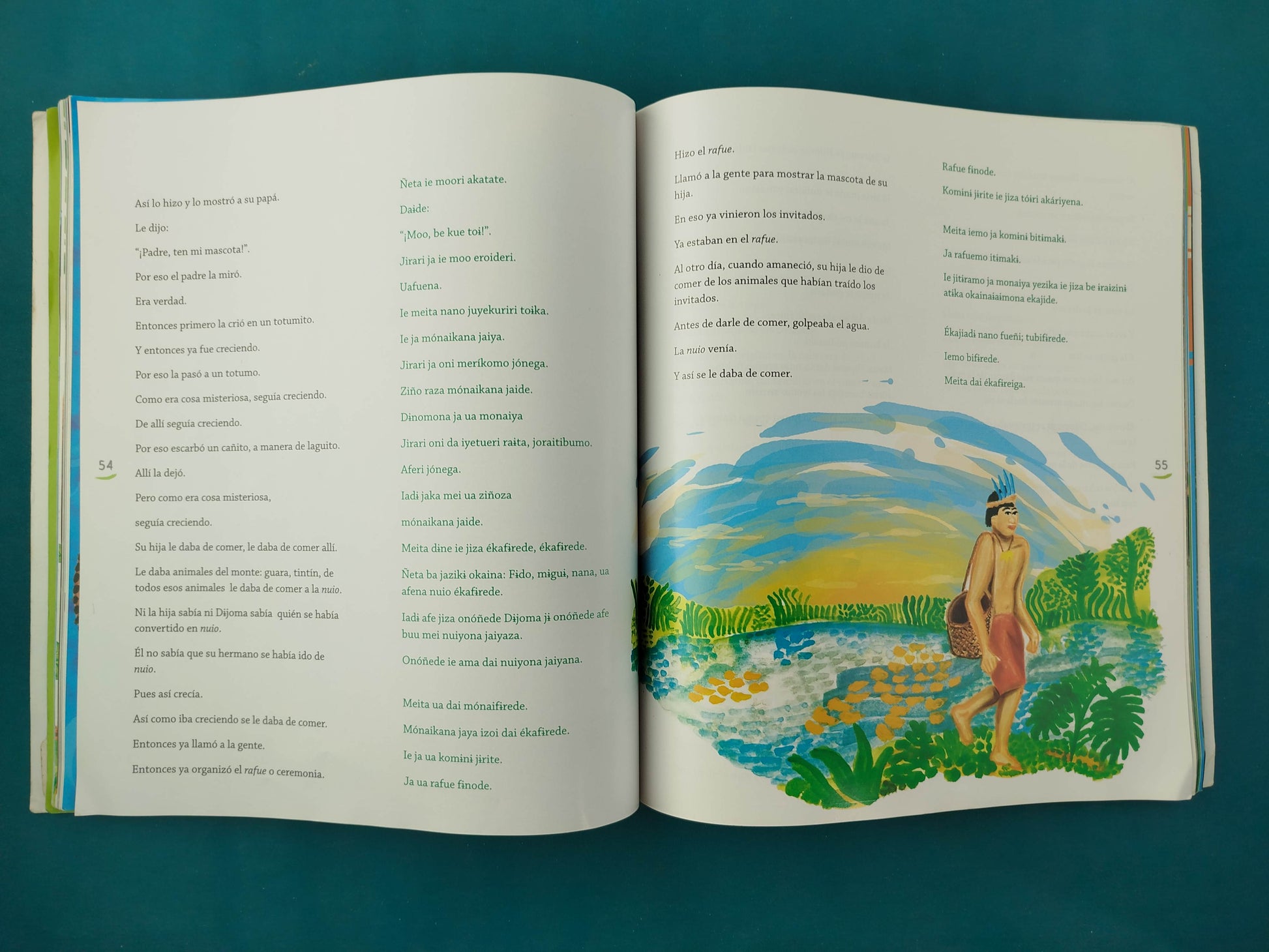 Segundo libro de la colección Narraciones indígenas, esta vez con relatos propios de la comunidad minika que habita en los territorios de Amazonas, Caquetá y Putumayo. Estos jagáiai no son puro cuento, tampoco mitos o leyendas. Forman parte de la sabiduría ancestral de los minika, un pueblo que se divierte y aprende contando historias sobre la vida en la naturaleza. Los personajes del jagáiai son inquietos, astutos, conocedores del mundo. Tienen poderes que les permiten entender el lenguaje de los fenómenos naturales. Aprenden de sus experiencias diarias, difíciles y misteriosas, y a la vez son engañados y confrontados por el clima y las adversidades del entorno.