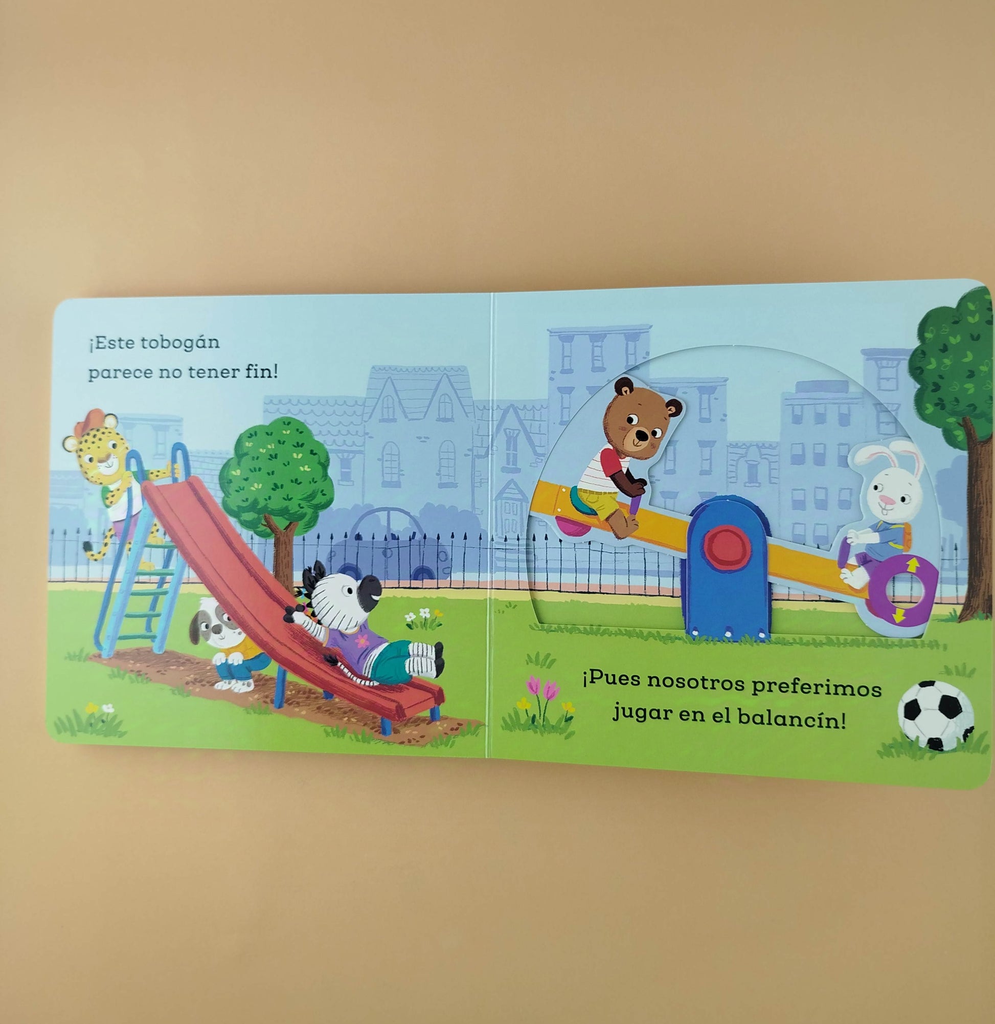 Si te gusta ir al parque, ¡te encantará este libro! ¡Qué hermoso día! ¡Qué buen despertar! Osito Tito llama a sus amigos y salen a jugar. Irán al parque, chutarán la pelota, subiran al balancín y se tomarán un helado. ¡Acompáñalos en este divertidísimo libro con mecanismos para estirar!