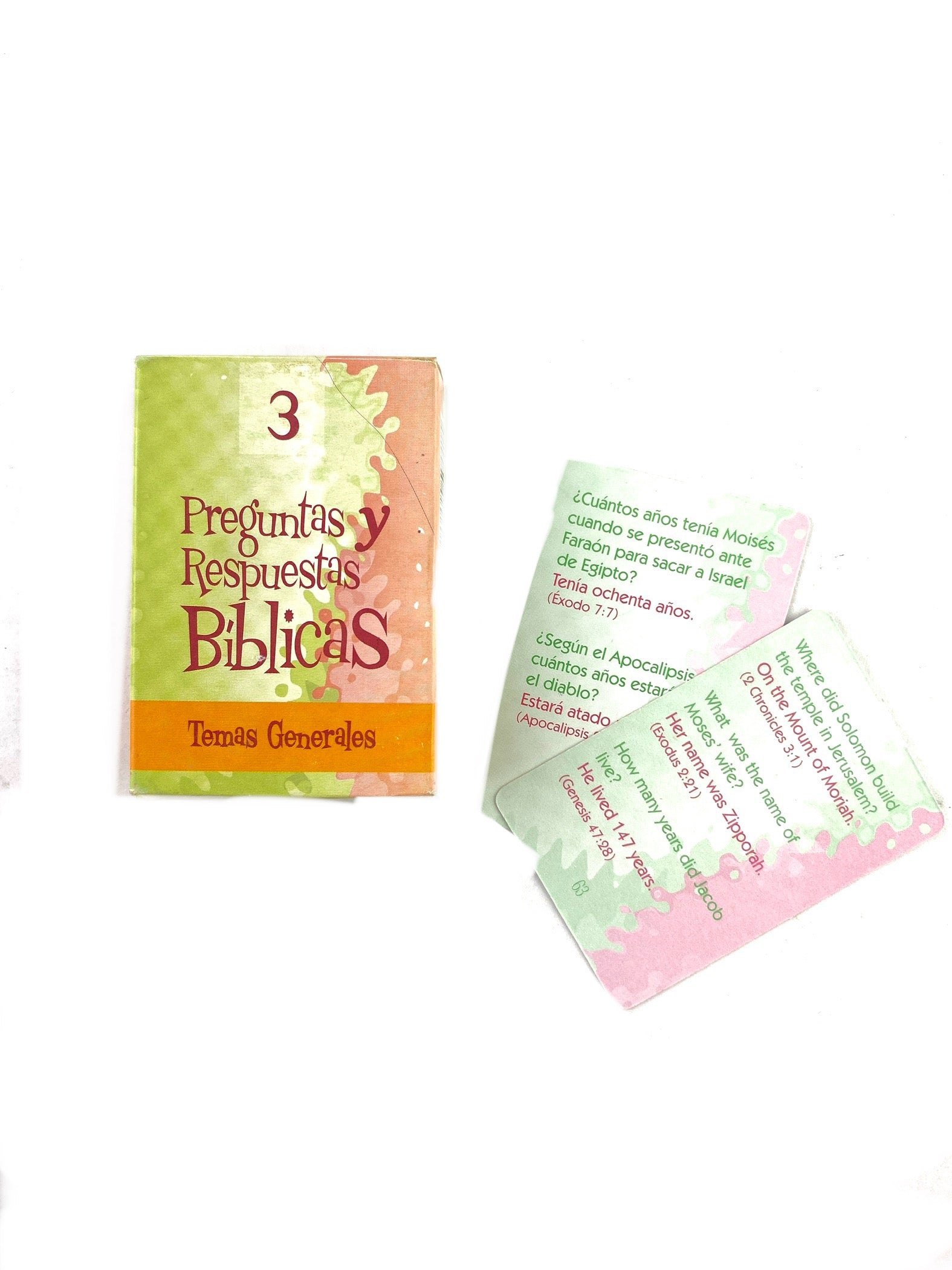 Novedoso y divertido juego que le ayudará a conocer la Biblia por medio de preguntas y respuestas mientras aprende ingles. Ideal para reuniones, grupos de estudio y escuela dominical.