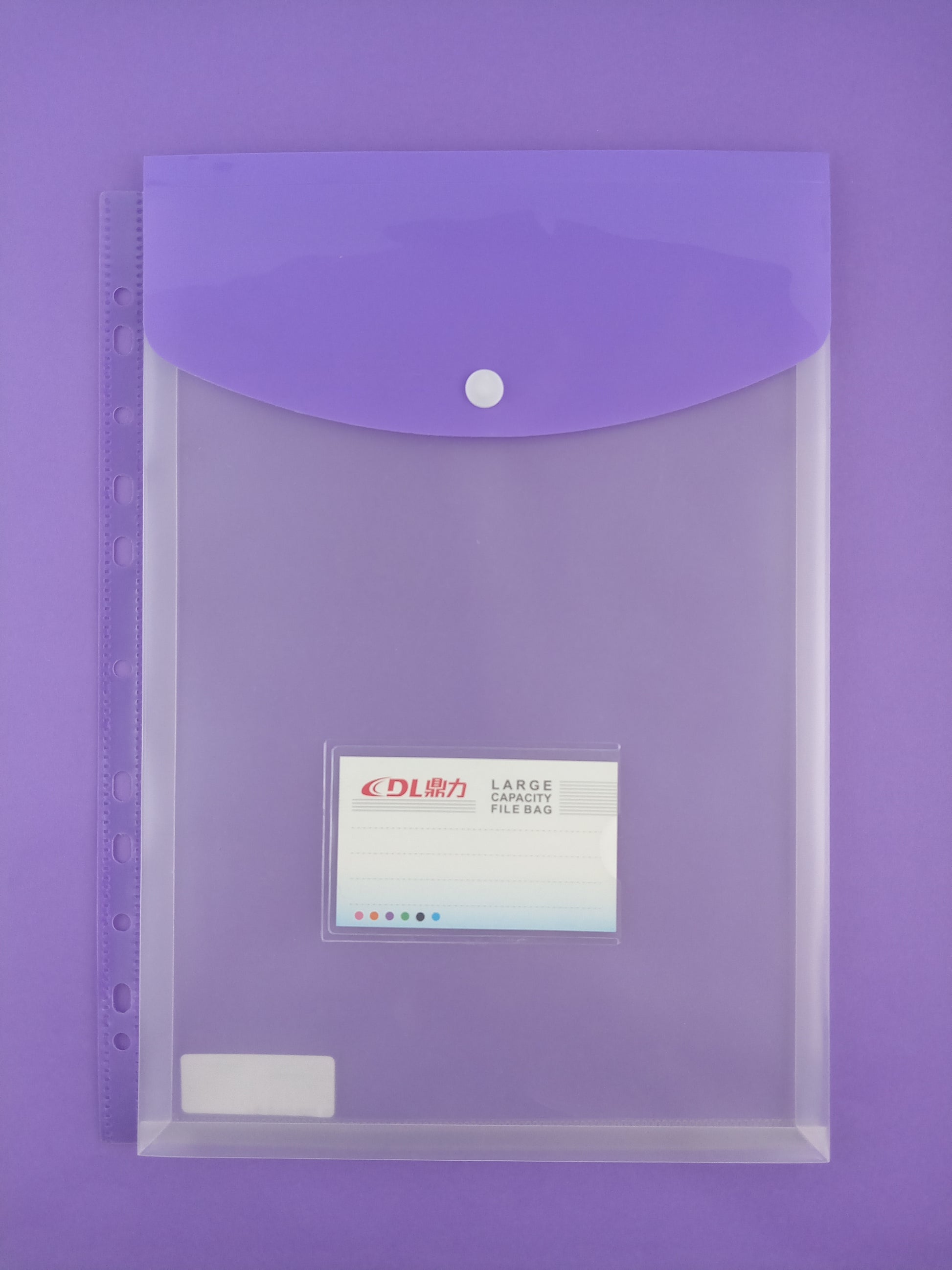Sobre plástico expandible transparente botón A4 Vertical para carpeta de anillas