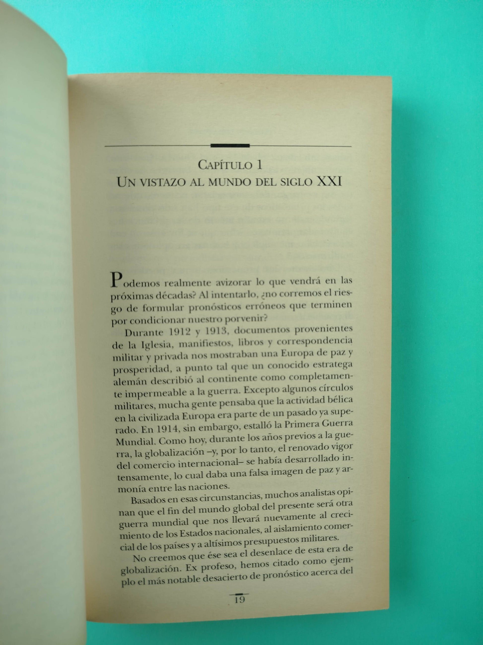 Como muchas otras cosas, el futuro se construye. Esto, que es verdad a escala individual, es doblemente cierto en el ámbito colectivo. Así como el rascacielos fue primero una imagen en la mente del arquitecto, el futuro de un pías, de una region o de un continente también esta poderosamente condicionado por la visión que los pueblos se forjen de el. Históricamente, muchas sociedades han sentido que tienen un destino manifiesto; algunas incluso conservan esa idea bajo diversos ropajes. Pero América latina lleva siglos sin participar de visiones de ese tipo.
