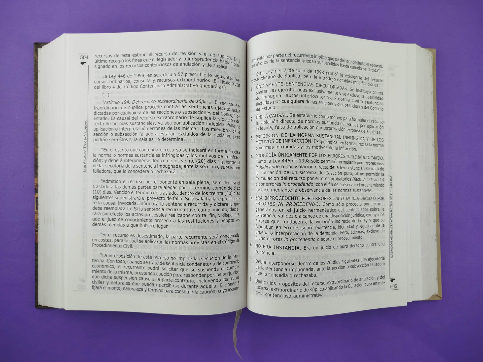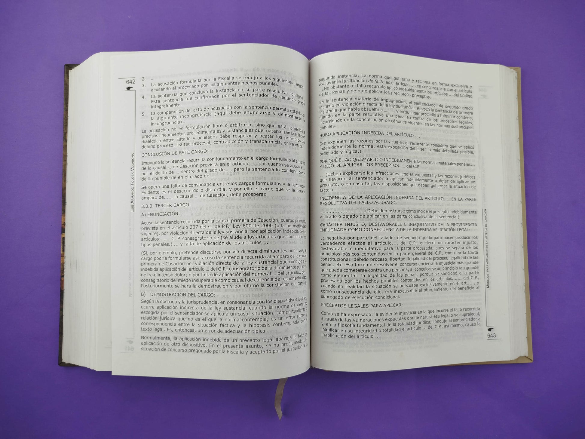 El libro Teoría y Técnica de la Casación: Civil, Penal, Laboral, Penal Militar, Acciones de Grupo, Derecho Comparado del magistrado Luis Armando Tolosa Villabona es una obra jurídica de referencia en Colombia, publicada por Doctrina y Ley Ltda. en 2008. Tiene más de 890 páginas y ofrece un análisis profundo del recurso extraordinario de casación desde una perspectiva histórica, constitucional y comparada