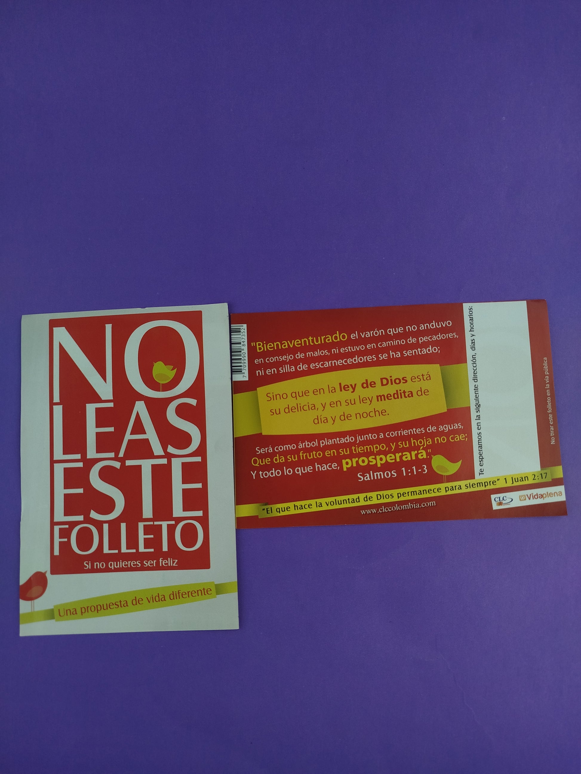 Tratado bíblico No leas este folleto si no quieres ser feliz